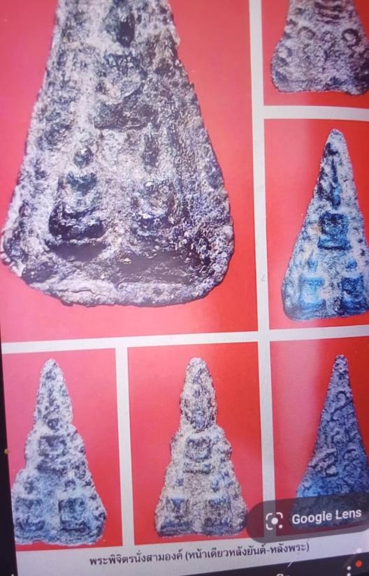 พระพิจิตนั่งสามองค์ เนื้อชินเขียว |