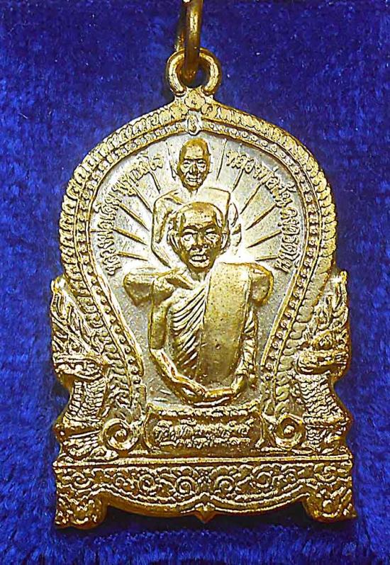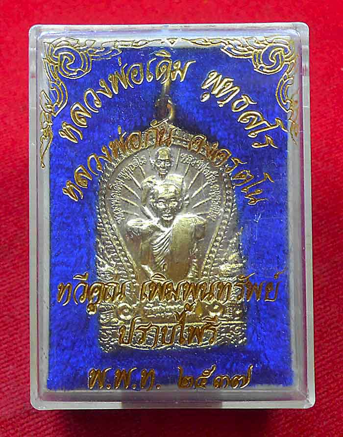 เหรียญนั่งพานหลวงพ่อเดิมหลวงพ่อกันพุทธซ้อน ด้านหลัง พพท 2537 กะไหล่ทองสวยหนา