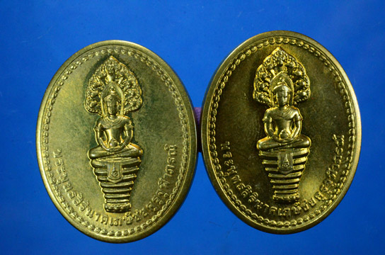 เหรียญที่ระลึก พระพุทธสิรินาคเภษัชยคุรุจุฬาภรณ์ (เหรียญพระพุทธโอสถ) พ.ศ. 2558 รพ จุฬาภรณ์ เนื้อโลหะสีเหลือง พระพุทธเจ้าแห่งการรักษาโรค เพือปราศจากโรคภัยทั้งปวง 2 องค์ สวยครับ