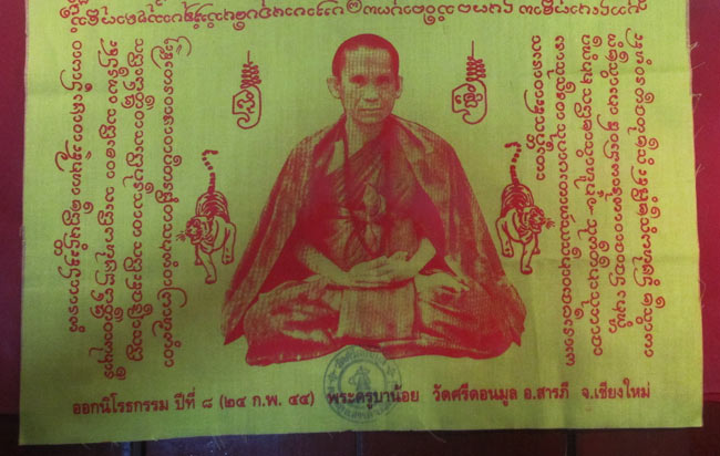 ผ้ายันต์ พระครูบาน้อย วัดศรีดอนมูล อ.สารภี จ.เชียงใหม่ ครับ