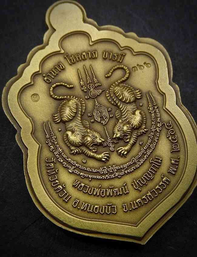 **เหรียญเสือคาบดาบ3 พยัคฆ์บูชาครูคู่บารมี 100 ปี หลวงพ่อพัฒน์ วัดห้วยด้วน เนื้อทองทิพย์ซาติน ไม่ตัดปีก ตอก ๙ รอบ ลงยาขอบสีธงชาติ หมายเลข 366 สวยๆครับ