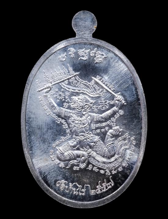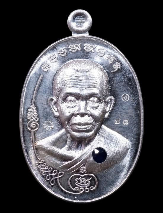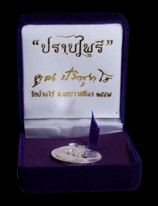 เหรียญมนต์พระกาฬ ปราบไพรี หลวงพ่อคูณ วัดบ้านไร่ เนื้อเงินฝังอัญมณี หมายเลข 78 สร้าง 999 เหรียญ ปี2557 มีกล่อง แดงเคาะแรก
