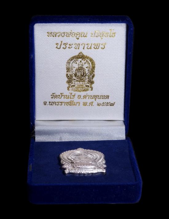 เหรียญนั่งพาน ประทานพร หลวงพ่อคูณ ปี2557 เนื้อเงิน หมายเลข 45 มีกล่อง แดงเคาะแรก