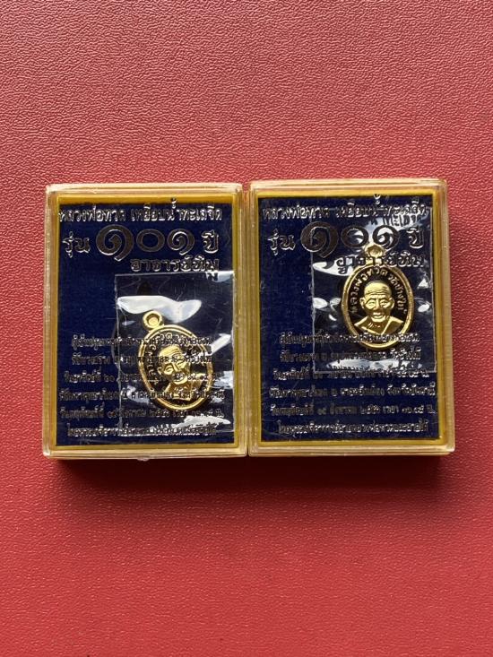 เคาะเดียวแดง เม็ดแตง 2องค์หลวงปู่ทวด รุ่น101ปี เนื้อ ชุบทองลงยาดำ |