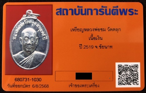 เหรียญรุ่นแรก หลวงพ่อชม วัดตลุก ( เนื้อเงิน ) ปี 2519 จ.ชัยนาท สภาพสวย มาพร้อมบัตรรับรองครับ