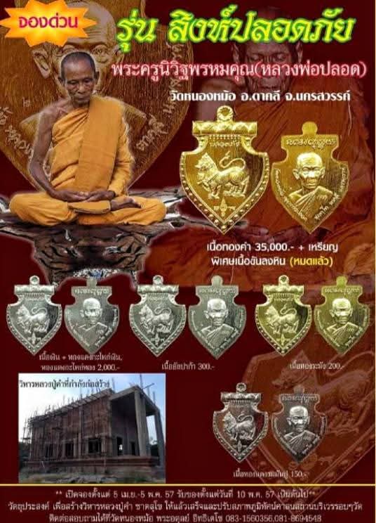 เหรียญสิงห์ปลอดภัยหลวงพ่อปลอด วัดหนองหม้อ จ นครสวรรค์ ปี57