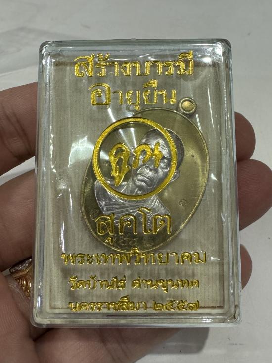 เหรียญอายุยืน คูณ สุคโต ปี2557 เนื้อฝาบาตร หลังแบบ หน้ากากเงิน no.150 มีกล่อง