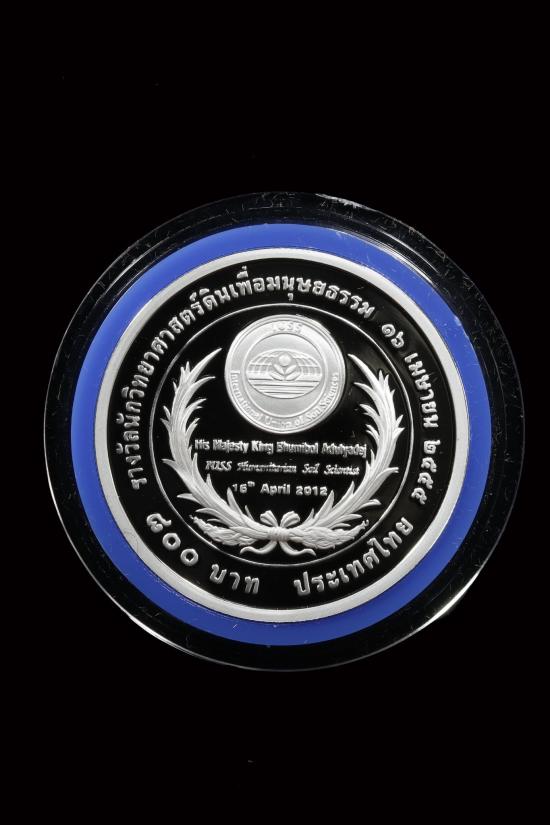 ชื่อพระเครื่อง *เคาะเดียว* เหรียญกษาปณ์ชนิด 800 บาท ในหลวงร.9 ที่ระลึกเฉลิมพระเกียรติ ทูลเกล้าฯถวาย รางวัลนักวิทยาศาสตร์ดินเพื่อมนุษยธรรม ปี2555 ((( เนื้อเงิน ขัดเงา ))) มีกล่อง+ใบ
