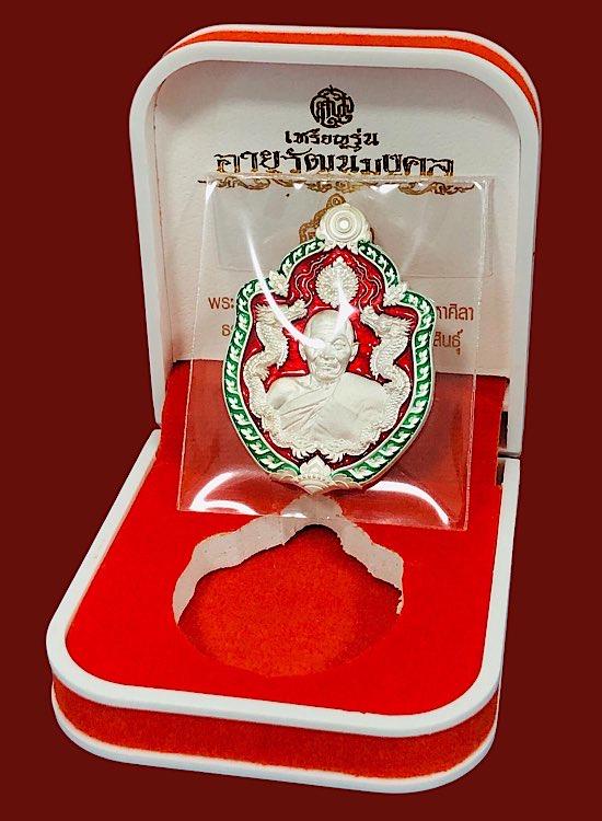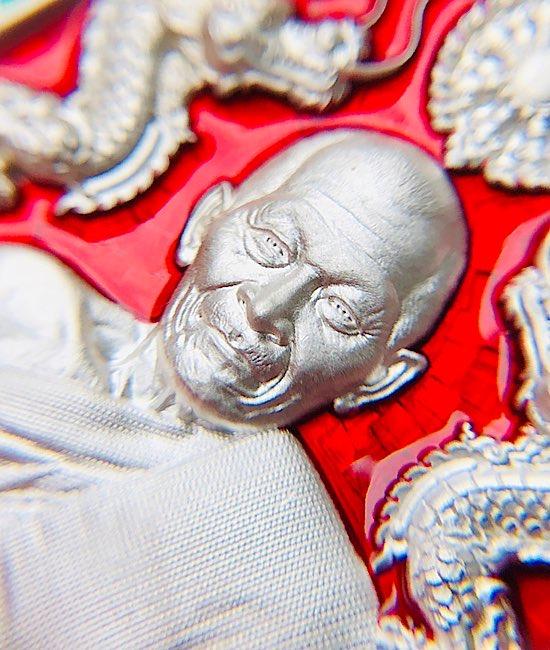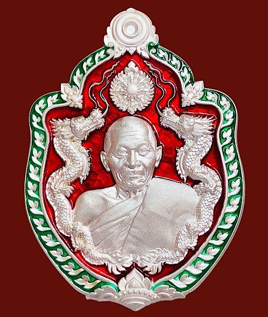 หลวงปู่มหาศิลา อายุวัฒนะมงคล81 มังกรคู่ เนื้อเงินลงยาแดง จมูก100 เลข143= 8 กล่องเดิม คัดสวยๆ
