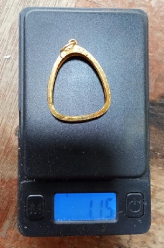 รายละเอียด กรอบทองคำมือสองทรงเลี่ยมพระปิดตาหลวงปู่โต๊ะ หนัก 1.15 กรัม ขนาดจอใน กว้าง 2 ซม สูง 2.4 ซม แกะออกจากพระปิดตา จีพระตรวจสอบทองได้ 67% (ไม่มีบัตรรับรอง เพราะบัตรติดไปกับพระแล้วนะครับ)