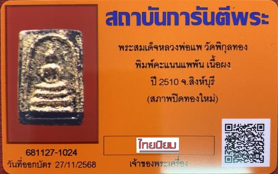รายละเอียด พระสมเด็จคะแนน แพพัน หลวงพ่อแพ วัดพิกุลทอง สิงห์บุรี พ.ศ.2510 พระมีการลงรักปิดทองที่ด้านหน้าไว้ สวยเดิม + บัตรรับรอง G-Pra