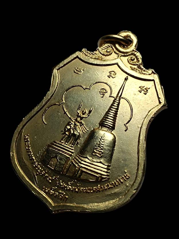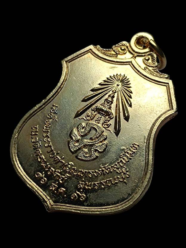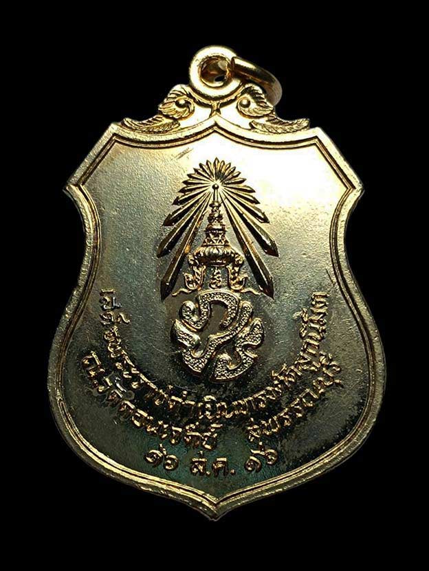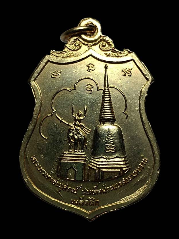 เหรียญเผด็จศึก พระนเรศวรมหาราช หลังภปร วัดดอนเจดีย์ เนื้อกะไหล่ทอง ปี พ.ศ.2516