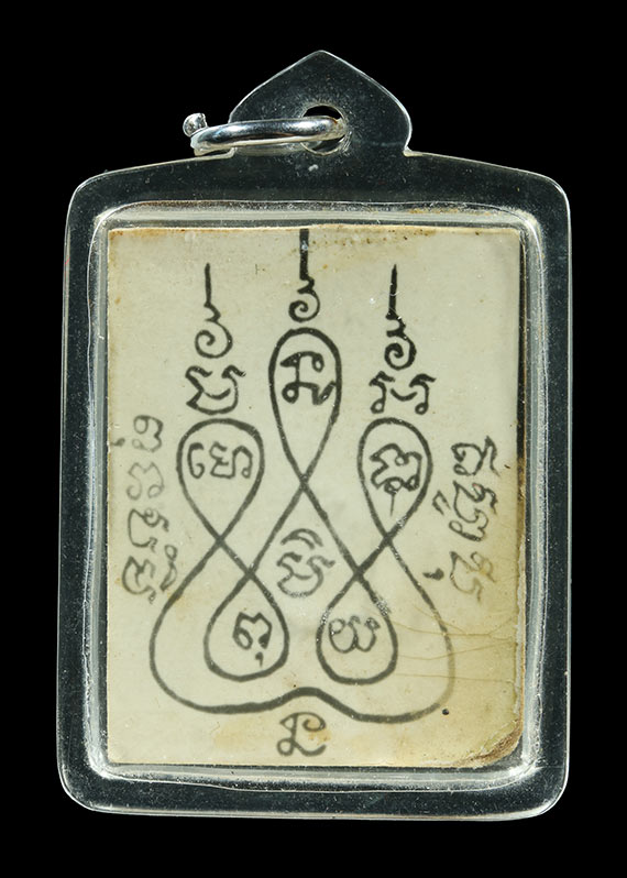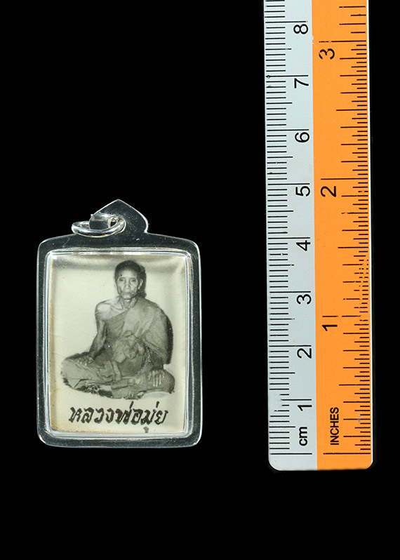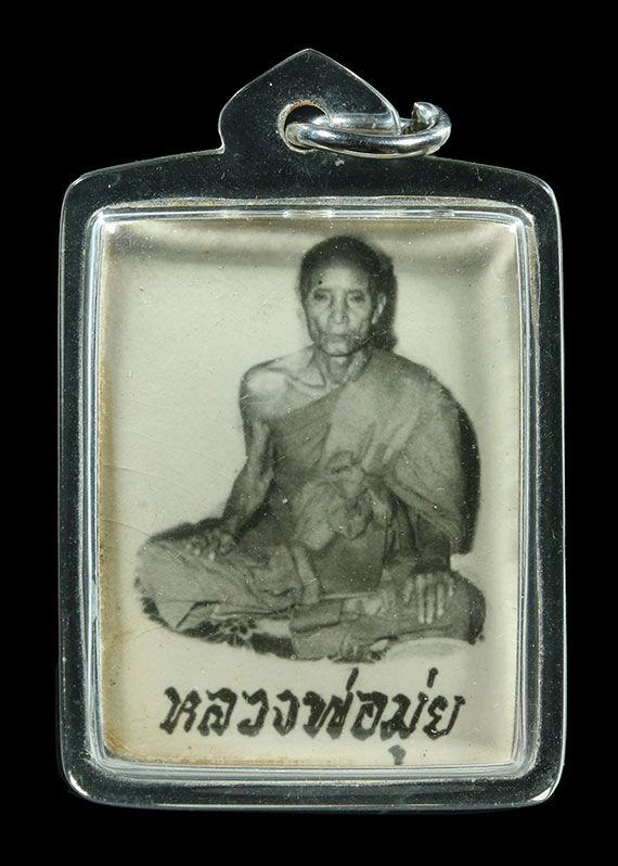 รูปถ่ายหลวงพ่อมุ่ย วัดดอนไร่ นั่งตะแคงข้าง หลังยันต์ห้า สวยเดิมคมชัด