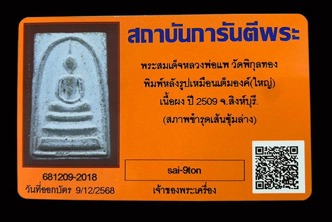 สมเด็จหลังรูปเหมือน ปี.09 หลวงพ่อแพ พิมพ์ใหญ่ ........................700