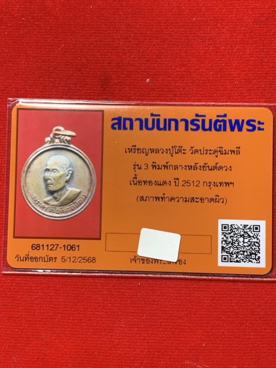 พระหลวงปู่โต๊ะปี 12 เนื้อทองแดง กลมกลาง มาพร้อมบัตรรับรองสบายใจได้ครับ