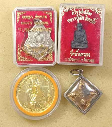 เหรียญลพ.กวยวัดหนองแขม ปี 63 + กริงลป.เล็ก วัดบ้านหนอง ชัยนาท + เหรียญลพ.สา่ย วัดดอนกระด่ายทอง + เหรียญพระพรหม หลังจาร วัดนางใน อ่างทอง ปี56 |