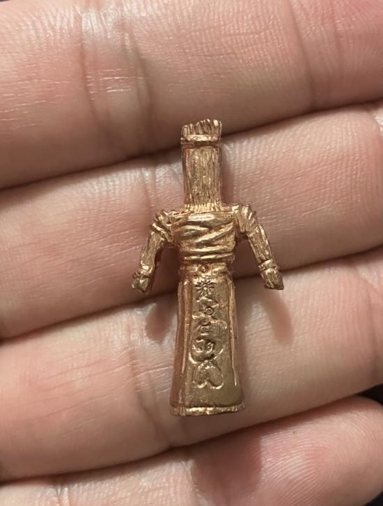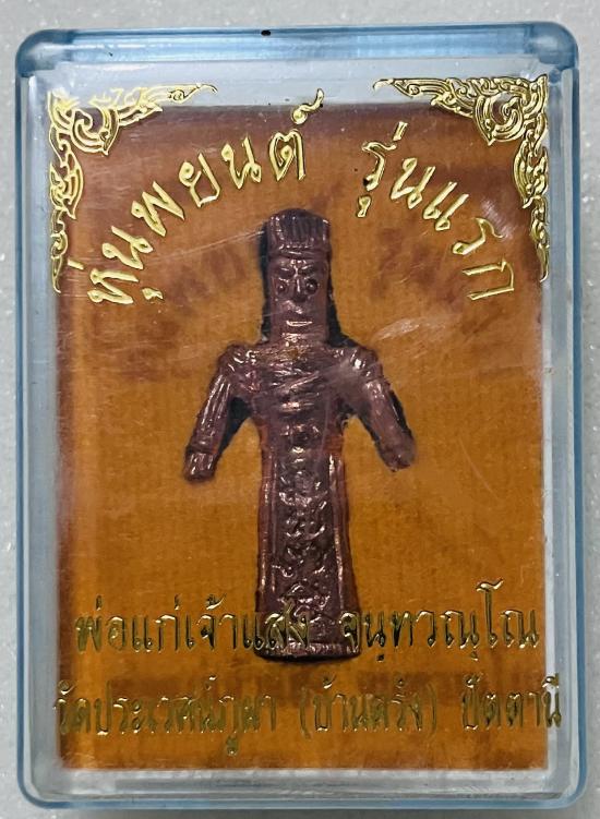 วัดใจเคาะเดียวแดง หุ่นพยนต์เนื้อทองแดง รุ่นแรก พ่อแก่เจ้าแสง วัดประเวศน์ภูผา (บ้านตรัง) ปัตตานี พร้อมกล่องเดิม |