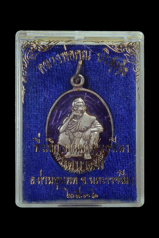 เหรียญ ( อาก้า ) ที่ระลึกงานผูกพัทธสีมาวัดบ้านไร่ ( เนื้อเงินลงยาม่วง ) พ.ศ.2536 ( กล่องเดิม )