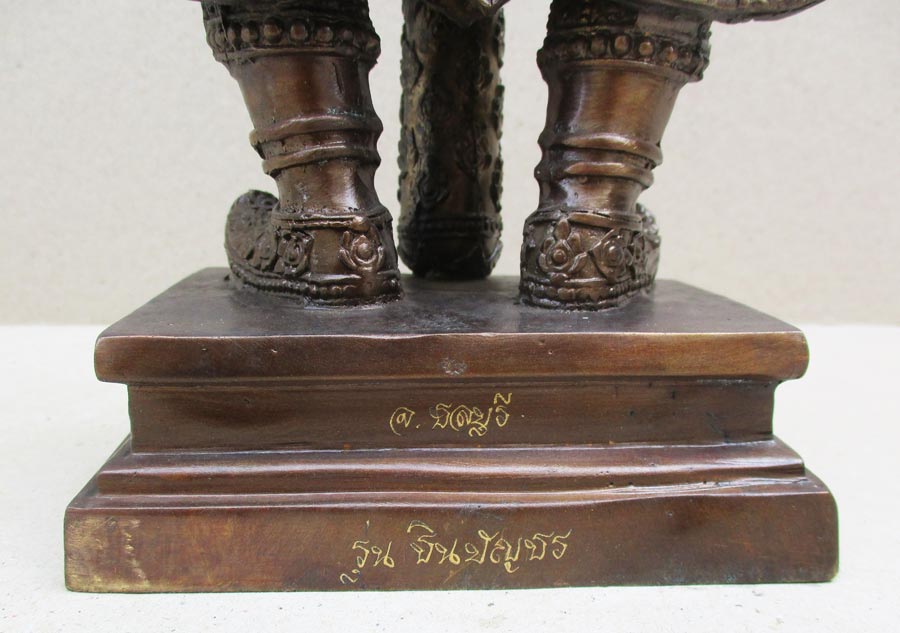 ฐานขนาด 3.1 นิ้ว X 4.5 นิ้ว ใต้ฐานอุดปูนปั๊มตราวัด ฝังขวดใสบรรจุผงมวลสาร ฝังเหรียญ ตอกโค๊ต ศาลา , ตอกโค๊ต ยันต์นะ ตอกหมายเลข 31