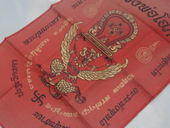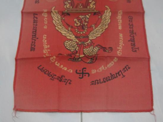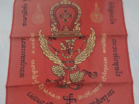 วัดใจเคาะเดียว........100.......ผ้ายันต์ครุฑแบกเสมา วัดหลวงพ่อโอภาสี อาศรมบางมด ขนาดประมาณ 11 x 18 นิ้ว สวย |