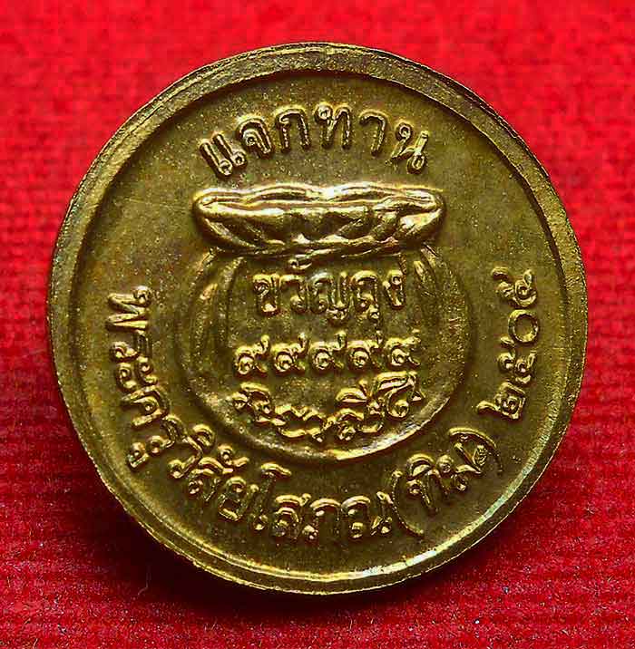 เหรียญแจกทาน ขวัญถุง หลวงปู่ทวดหลังพระอาจารย์ทิม ปี 2505 กะไหล่ทอง