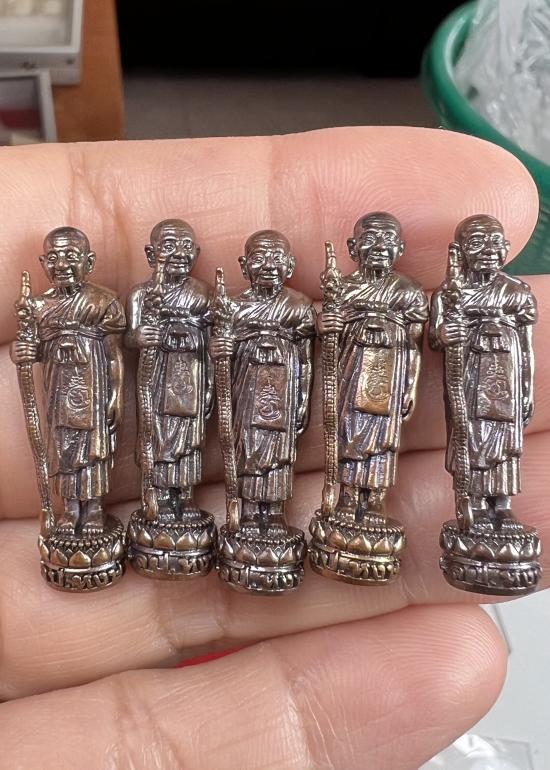 5 องค์ รูปหล่อยืนถือไม้เท้า อุดผงใต้ฐาน หลวงปู่หงษ์ พรหมปัญโญ สุสานทุ่งมน จ.สุรินทร์ ปี 2555 U1