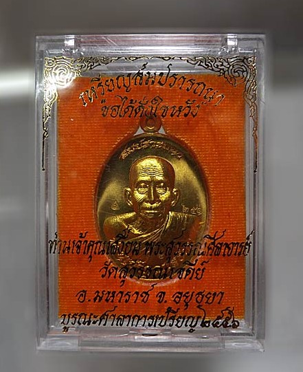 ขอได้ดั่งใจหวัง เหรียญสมปรารถนา ท่านเจ้าคุณเสงี่ยม วัดสุวรรณเจดีย์ เนื้อทองทิพย์ หลังแบบ มีจาร พร้อมกล่อง |