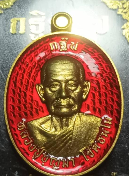 เนื้อชุบทอง ลงยาแดง พร้อมกล่องเดิม No.115เหรียญกฐินรุ่นสุดท้ายหลวงปู่