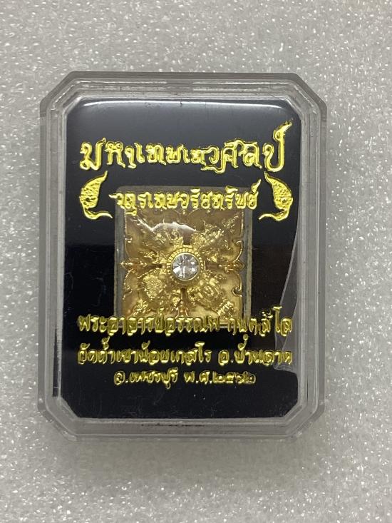 มหาเทพเทวศิลป์ จตุรเทพอริยทรัพย์ พระอาจารย์อรรณพ(อาจารย์เล็ก) วัดถ้ำเขาน้อย จ.เพชรบุรี เนื้อสัมฤทธิ์ชุบทอง พิมพ์เล็ก ขนาด 1.5 ซ.ม. กล่องเดิม |