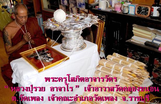 ยอดเอกแห่งตำรับวิชามหารวย อ่านไม่ผิดหรอก วิชามหารวย หลวงปู่ตั้งใจสร้างพระปิดตารุ่นนี้เป็นอย่างมาก เริ่มตั้งแต่มวลสารที่นำมาขึ้นองค์พระ ซึ่งเป็นสูตรจำเพาะเจาะจง เน้นแน่นหนักให้ร่ำรวยไว ได้โชคมาก มีทรัพย์ไว ยิ่งเรื่องปลุกเสกพระปิดตานี้ หลวงปู่ยิ่งเน้นย้ำเสกใส่สุดยอดสรรพวิชาอาคมขลัง สื่อส่งพลังแห่งเงินทอง บันดาลให้ข้าวของเพิ่มผลพูนทวี หากใครเป็นหนี้ ก็จักหมดหนี้ในไม่ช้า ใครที่ทำมาค้าขาย ที่บ่นว่าขายของไม่ดี มีพระปิดตานี้ก็จักรวยใหญ่ ใครที่ดวงตก ชะตาต่ำ ชีวิตย่ำอยู่กับที่ แนะนำว่ารีบหาพระปิดนี้มาไว้บูชาเลย เพราะมีพุทธคุณช่วยส่ง ช่วยเสริม ช่วยเพิ่มเติมให้ดวงดีไม่มีตก จากดวงที่ร่วง ก็จะกลับเป็นรุ่งพุ่งแรงได้อย่างน่าอัศจรรย์ใจเป็นยิ่งนัก หากมีเรื่องเดือดเนื้อร้อนใจ เพียงแค่ประนมมือยกพระปิดตา นะโมรวย รุ่นนี้ขึ้นหัว แล้วอธิษฐานนึกถึงหลวงปู่รวยผู้ปลุกเสก แล้วบอกกล่าวขอเอาในสิ่งที่หวัง ก็จักสำเร็จเห็นผลได้ดั่งใจในไม่ช้า หลวงปู่สร้างและปลุกเสกตามตำราวิชาครูบาอาจารย์ท่านสอนสั่ง ตั้งใจให้ไว้เป็นที่ระลึกสำหรับผู้ที่ร่วมทำบุญ และตั้งใจให้ลูกศิษย์ท่านได้มีของดีๆ ด้านเงินๆทองๆไว้บูชา เพราะเห็นว่ากาลนี้บ้านเมืองเข้าขั้นข้าวยากหมากแพง ผู้คนขัดสนติดขัดในเรื่องทรัพย์กันมากมายนัก จึงเห็นว่าสมควรแล้วที่จะได้มีของดีๆอย่างนี้ไว้บูชากัน