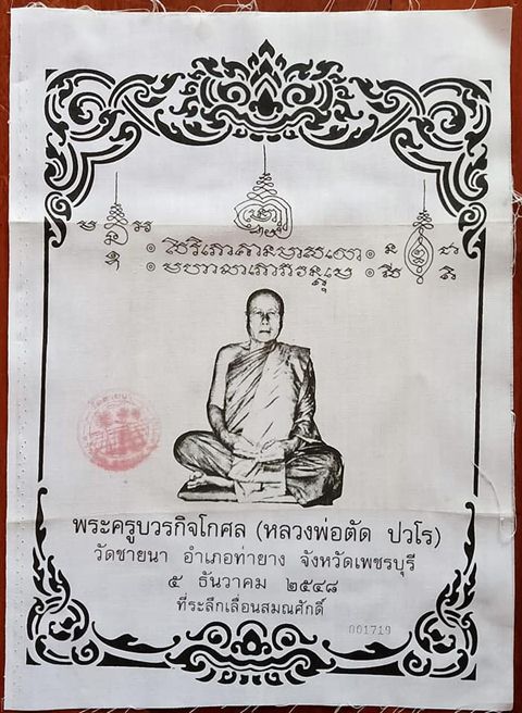 ผ้ายันต์เลื่อนสมณศักดิ์ หลวงพ่อตัด วัดชายนา ขนาด 11 x 15 นิ้ว เคาะเดียวแดงครับ