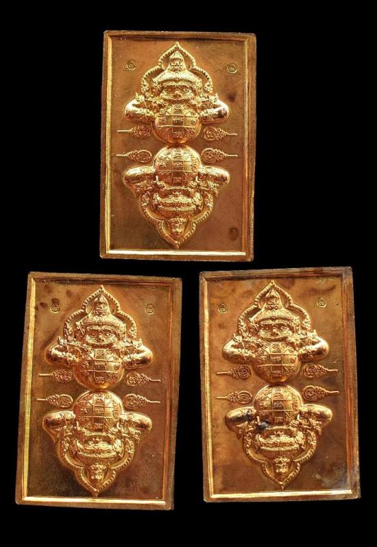 ชุด 3 องค์...เหรียญพระราหูทรงครุฑเสริมชะตา เนื้อทองระฆังร้อยปี ปี 2555 หลวงปู่สมชาย วัดคงคา จ.กาญจนบุรี พร้อมซองรูปเดิมจากวัด สภาพพระตามรูปที่ลงทุกประการ (ขนาดเหรียญประมาณ 4.5 x 3 ซม.)
