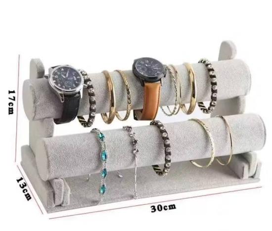 ตัวจัดเก็บสร้อยข้อมือ,กำไล หรือโชว์สินค้า ขาตั้งโชว์เครื่องประดับกํามะหยี่ 2 ชั้น ถอดออกได้ ขนาด 30 ซ.ม.