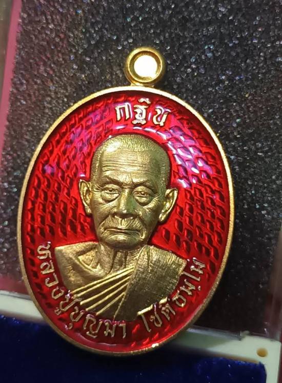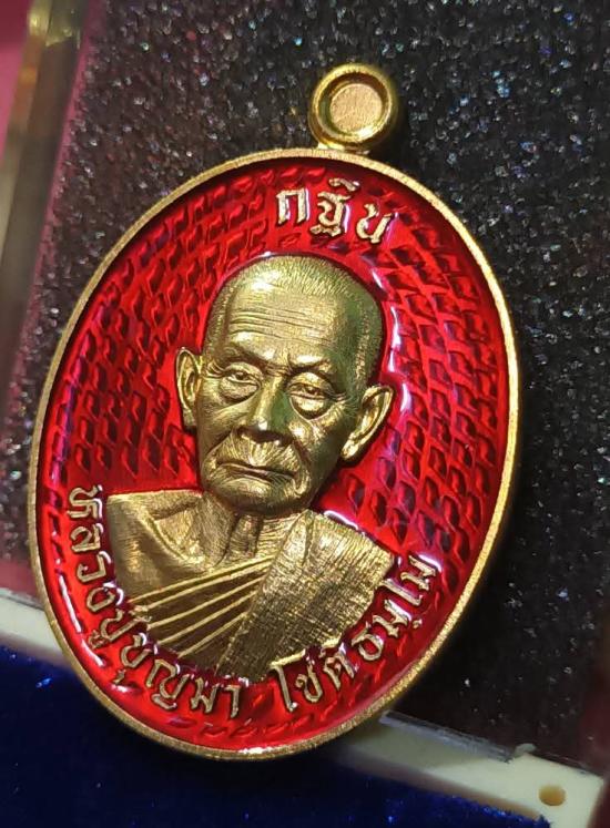 เนื้อชุบทอง ลงยาแดง พร้อมกล่องเดิม No.167เหรียญกฐินรุ่นสุดท้ายหลวงปู่