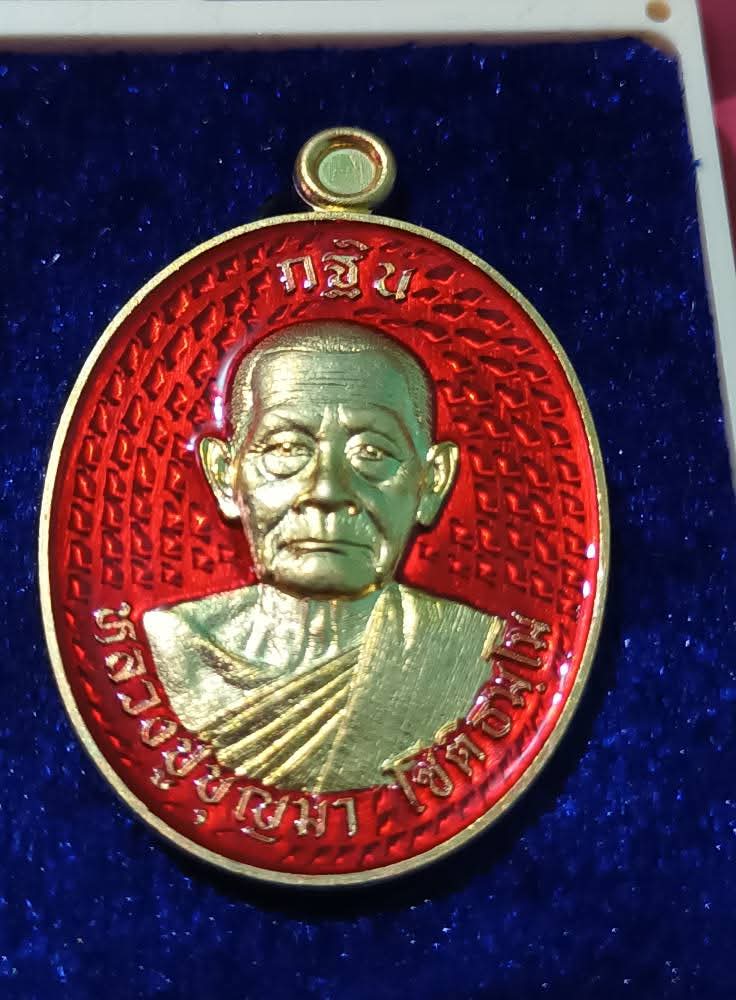 เหรียญกฐินปี67 หลวงปู่บุญมา เนื้อชุบทอง ลงยาแดง พร้อมกล่องเดิม No.343 เหรียญกฐินรุ่นสุดท้ายหลวงปู่