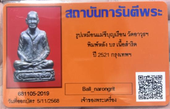 วัดใจ รูปเหมือนแม่ชีบุญเรือน วัดอาวุธฯ พิมพ์หลัง บร เนื้อสำริด ปี 2521 กรุงเทพฯ