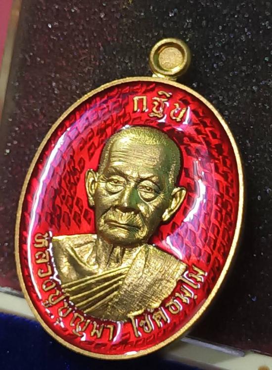 เนื้อชุบทอง ลงยาแดง พร้อมกล่องเดิม No.236 เหรียญกฐินรุ่นสุดท้ายหลวงปู่