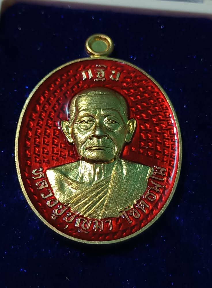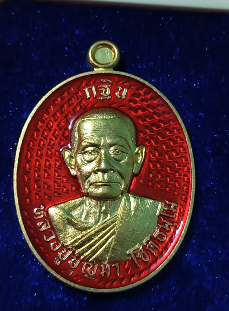 เนื้อชุบทอง ลงยาแดง พร้อมกล่องเดิม No.379 เหรียญกฐินรุ่นสุดท้ายหลวงปู่