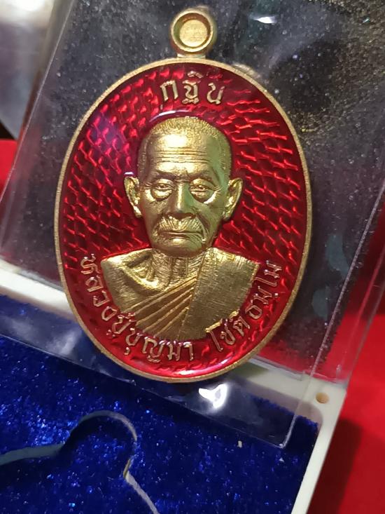 เนื้อชุบทอง ลงยาแดง พร้อมกล่องเดิม No.263 เหรียญกฐินรุ่นสุดท้ายหลวงปู่