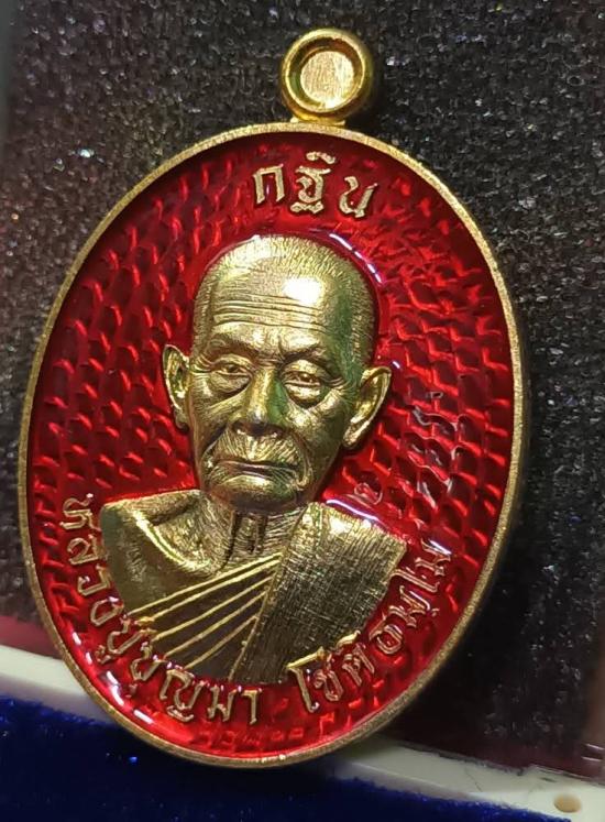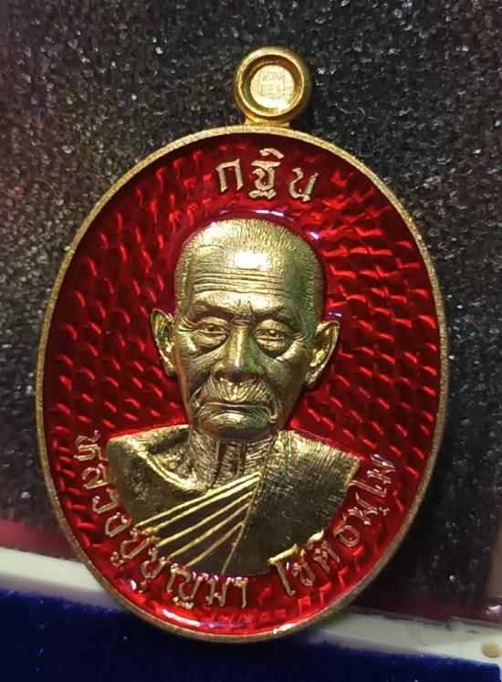 เนื้อชุบทอง ลงยาแดง พร้อมกล่องเดิม No.337 เหรียญกฐินรุ่นสุดท้ายหลวงปู่