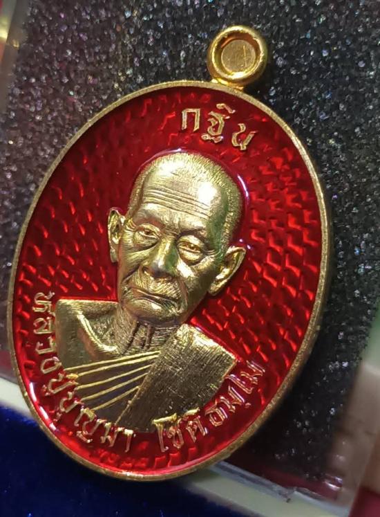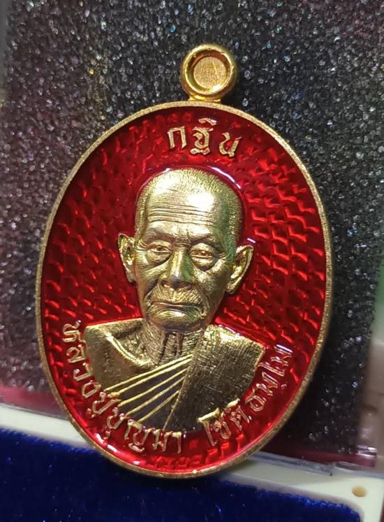 เนื้อชุบทอง ลงยาแดง พร้อมกล่องเดิม No.358 เหรียญกฐินรุ่นสุดท้ายหลวงปู่