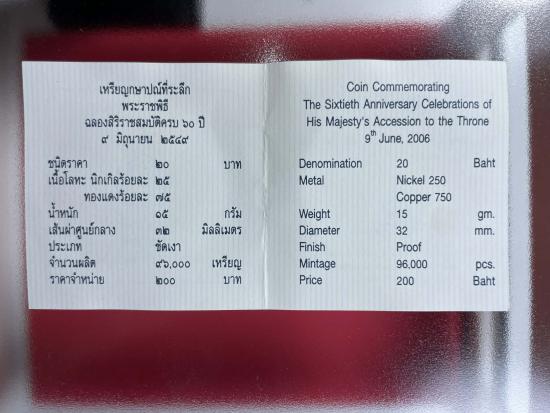 13 เหรียญ เหรียญ 20 บาทในหลวงรัชกาลที่9 ฉลองสิริราชสมบัติครบ 60 ปี พร้อมอุปกรณ์ครบ