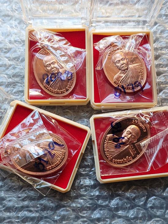 เหรียญเจริญพรบน รูปไข่ รุ่นแรก หลวงพ่อชำนาญ วัดชินวราราม จ.ปทุมธานี พิมพ์เครึ่งองค์ หลังพระพรหม(นิยม) 4 เหรียญ