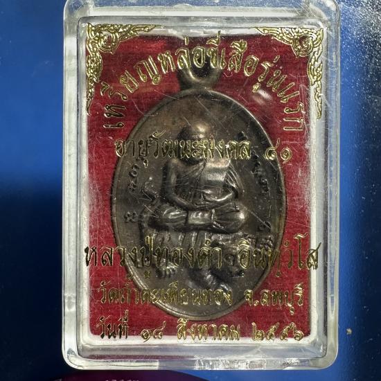 เหรียญหล่อขี่เสือรุ่นแรก รุ่น อายุวัฒนะมงคล 81 เนื้อนวะหลวงปู่ทองดำ วัดถ้ำตะเพียนทอง จ.ลพบุรี สร้างปี 2556