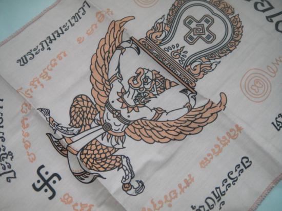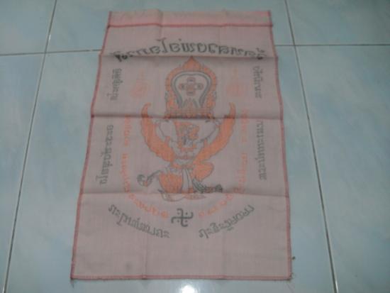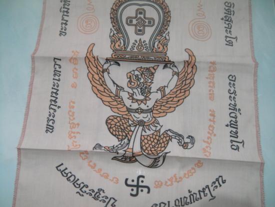 วัดใจเคาะเดียว........100.......ผ้ายันต์ครุฑแบกเสมา วัดหลวงพ่อโอภาสี อาศรมบางมด ขนาดประมาณ 11 x 18 นิ้ว สวย |