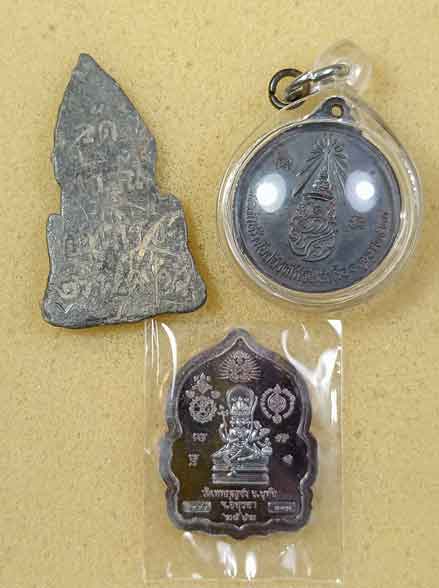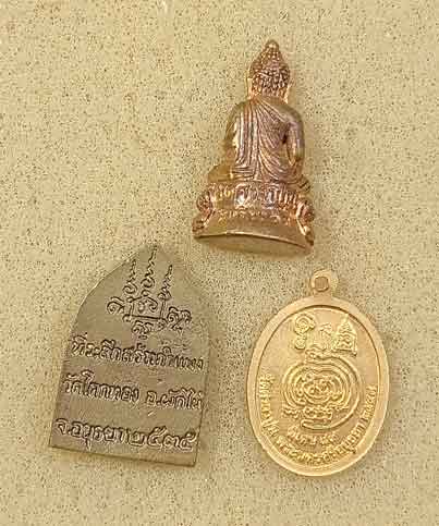พระหล่อโบราณ เนื้อตะกั่วปางป่าเลไลย์ (สภาพตามรูป) + เหรียญหลวงพ่อลำภู ปี21 วัดไก่จ้น อ.ท่าเรือ จ.อยุธยา