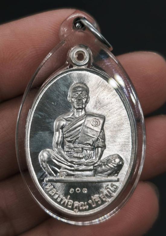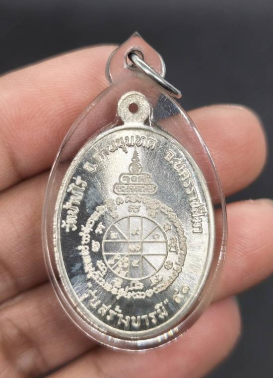 เหรียญหลวงพ่อคูณ รุ่นสร้างบารมี91 "เนื้อเงิน" จัดสร้างน้อยมาก ออกวัดบ้านไร่ปี57 พร้อมเลี่ยมกรอบเลนส์ใสมา เนื้อเงินสวยคมชัด ถอดจากต้นแบบเหรียญยอดนิยมปี19