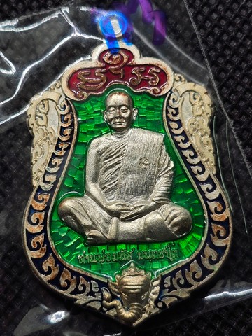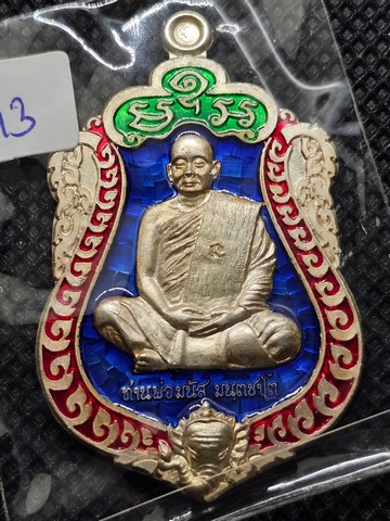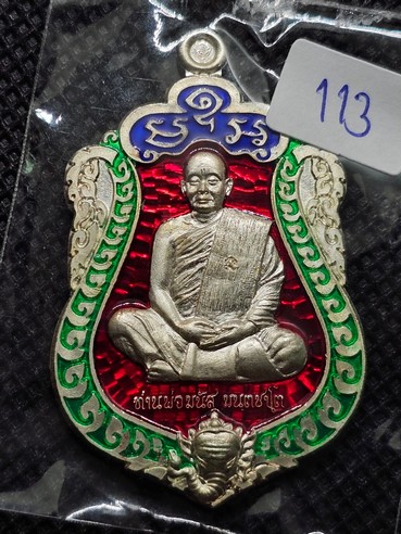 เหรียญเสมา รุ่นคชสารให้ลาภ ชุดเนื้อเงินลงยา 3เหรียญ หมายเลข ๑๑๓ หลวงพ่อมนัส มนฺตชาโต สำนักกรรมฐานฟื้นฟูจิตเขาแหลม บ้านคลองโป่ง จันทบุรี