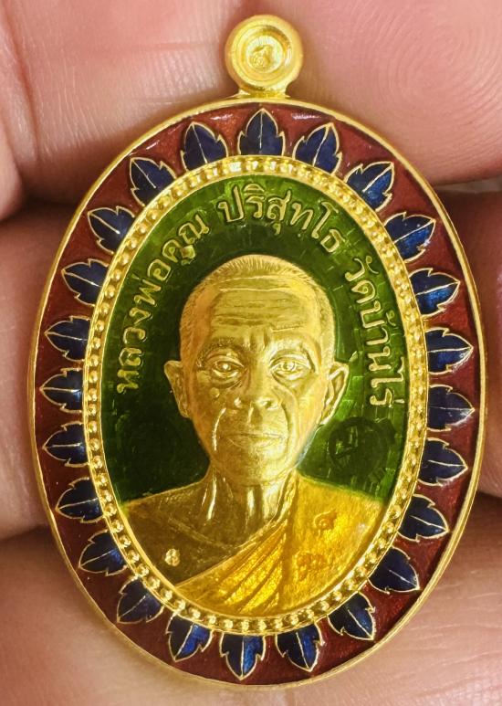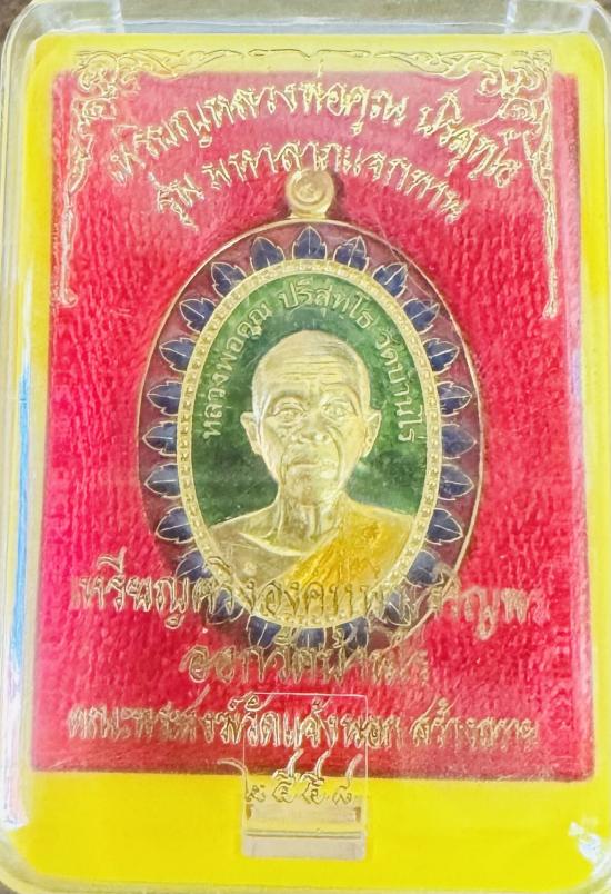 เหรียญหลวงพ่อคูณ ปริสุทฺโธ รุ่นมหาลาภแจกทาน เนื้อทองคำลงยาสีเขียว น้ำหนักทอง25กรัม หมายเลข9 มีกล่องครับ