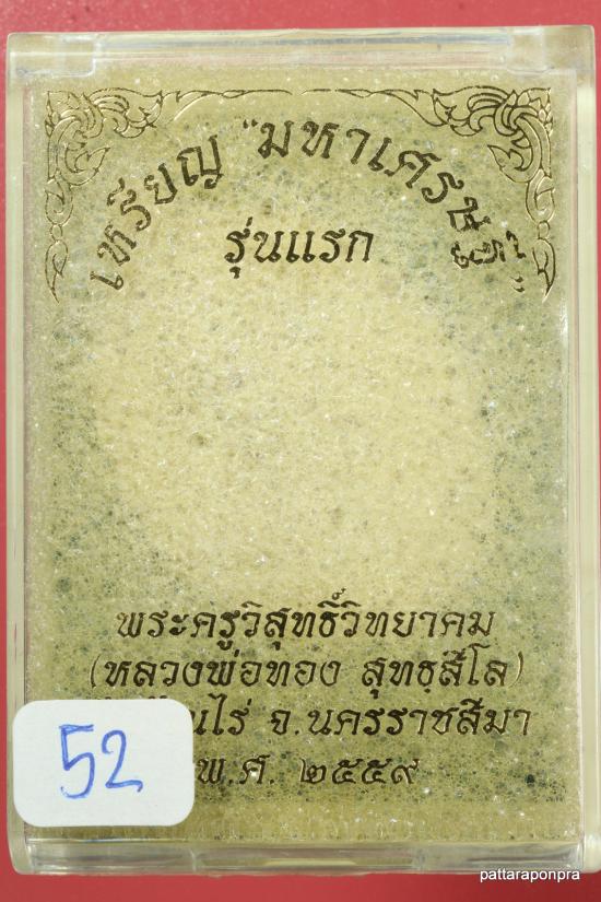 เหรียญหลวงพ่อทอง รุ่นมหาเศรษฐี ปี 2559 เนื้ออัลปาก้า หมายเลข 52